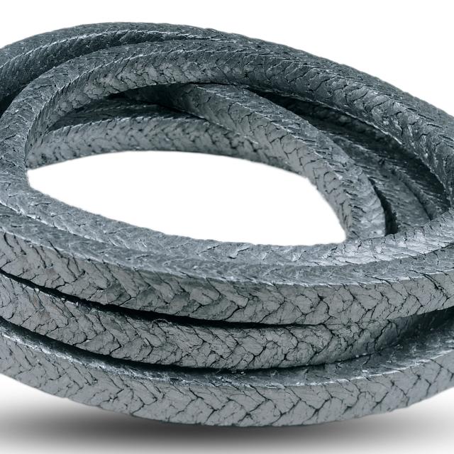 Chesterton 1400R is a unique, reinforced, braided, graphite tape packing with a corrosion inhibitor. The carbon yarn reinforcement is provided within the graphite tape yarn as well as the braided construction. 1400R forms a homogeneous mass under gland pressure, so that leakage is minimized in the packing set. The all-carbon/ graphite set withstands higher shaft speeds while limiting shaft/stem friction. The structural carbon fiber reinforcement drastically lowers extrusion when 1400R sets are installed in valves at higher pressures. In addition to its excellent sealing capabilities in rotating equipment, 1400R is a superior valve sealing material. This dual purpose design makes it a truly universal mechanical packing.