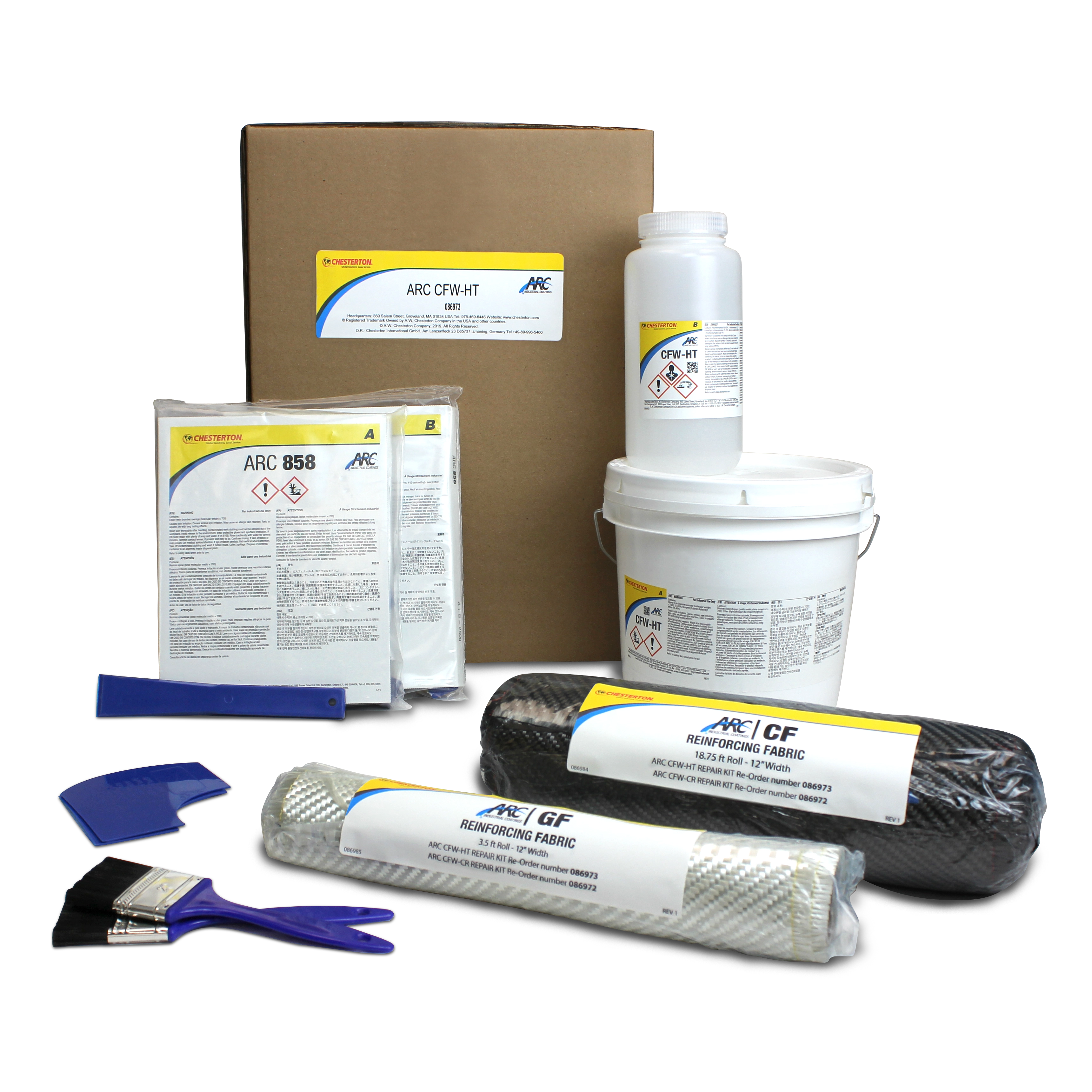 CFW-HT comes in a package able to repair pipes up to 24” in diameter. Contact your ARC salesperson for larger packaging options available. Each kit contains the following:
